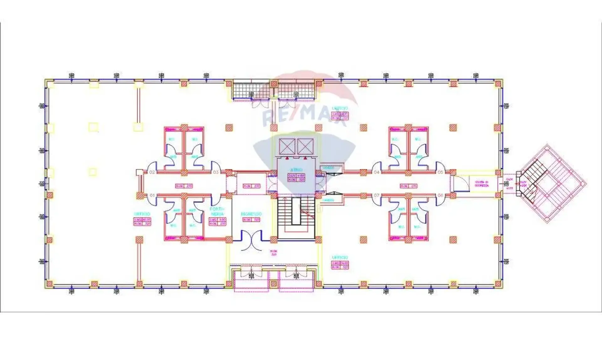 Architettura e Finiture: l'edificio si sviluppa su cinque piani fuori terra e presenta finiture di alta qualità, inclusi vetrate strutturali e marmo di Carrara.